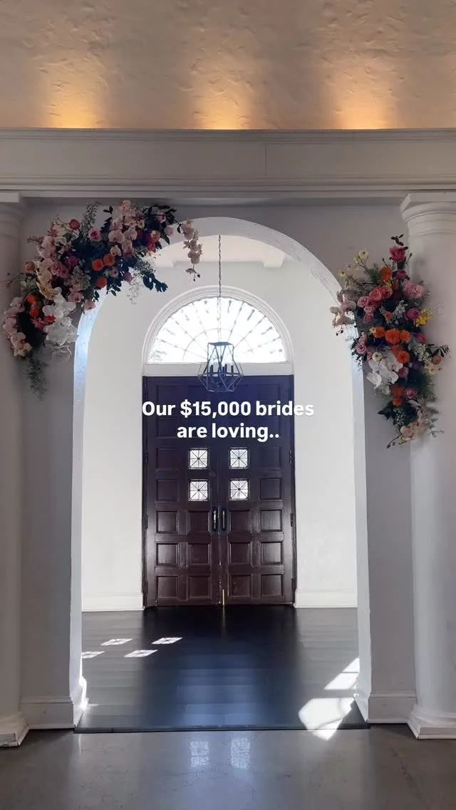The ceremony was held in front of the mural by Kitland Wehr so we used the palette of the painting to influence the vibe and color choices for the altar arrangements. The acrylic pedestals provide height without distracting or blocking the mural.