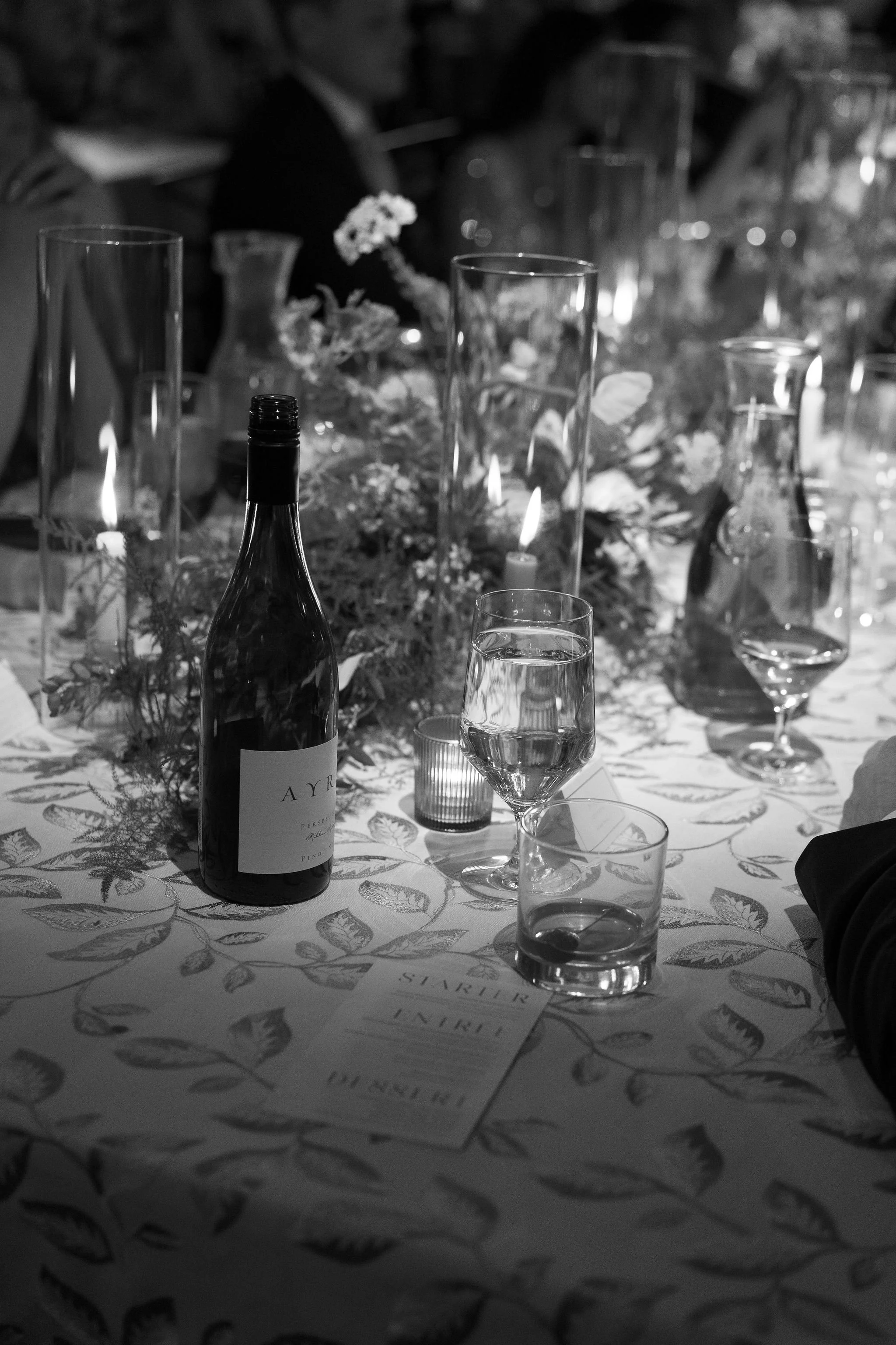 The dance floor was for sure the showstopper. We hung greenery and strands of carnation garlands to mirror the ceremony installation and create the perfect focal point in the room.